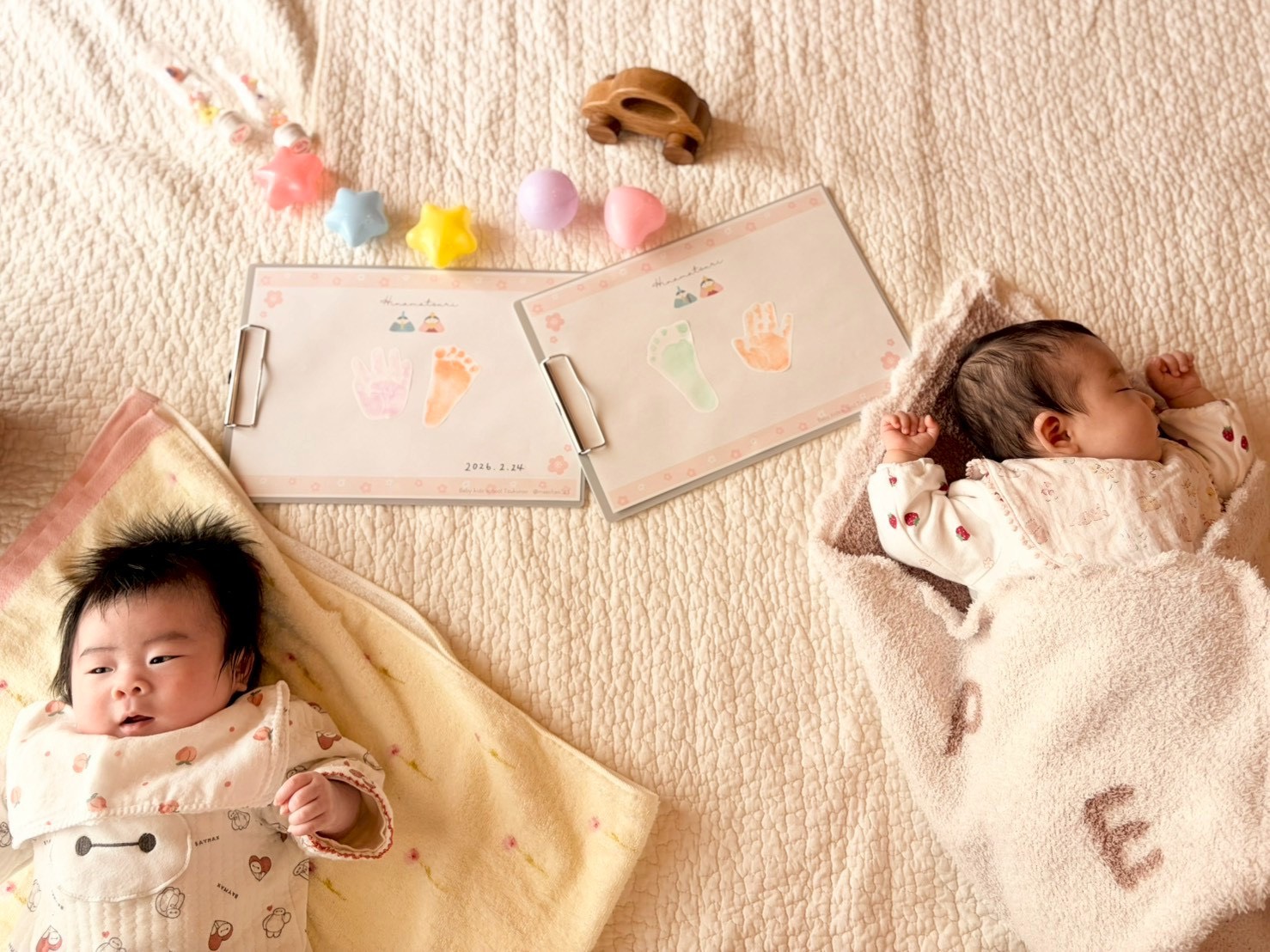 マッサージの後は赤ちゃんたちも気持ちよかったのかぐっすり眠ってしまう場面も。