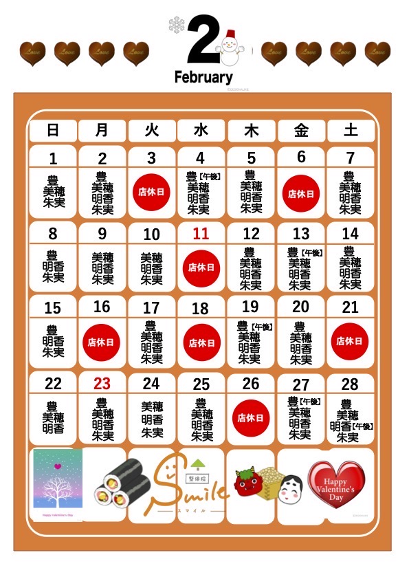 2026.01.27 2月の店休日のお知らせ 記事のタイトルとURLをコピーする Post Share Hatena Line Pocket RSS feedly Pin it ブログを更新しました「腰ほぐし講座を開催しました」 前の記事 ブログ更新しました「今年も勝田マラソン完走できました」 次の記事